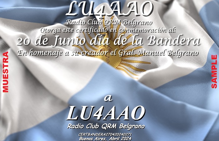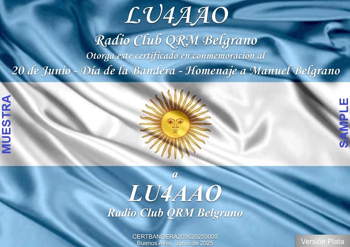 14 AL 22 DE JUNIO DE 2025: CERTIFICADO Y QSL DÍA DE LA BANDERA (Ed.2025)