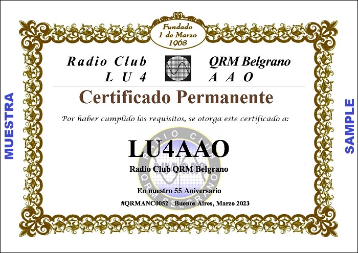 Certificado Día del Radioaficionado (ed.2024). Información: click aquí.