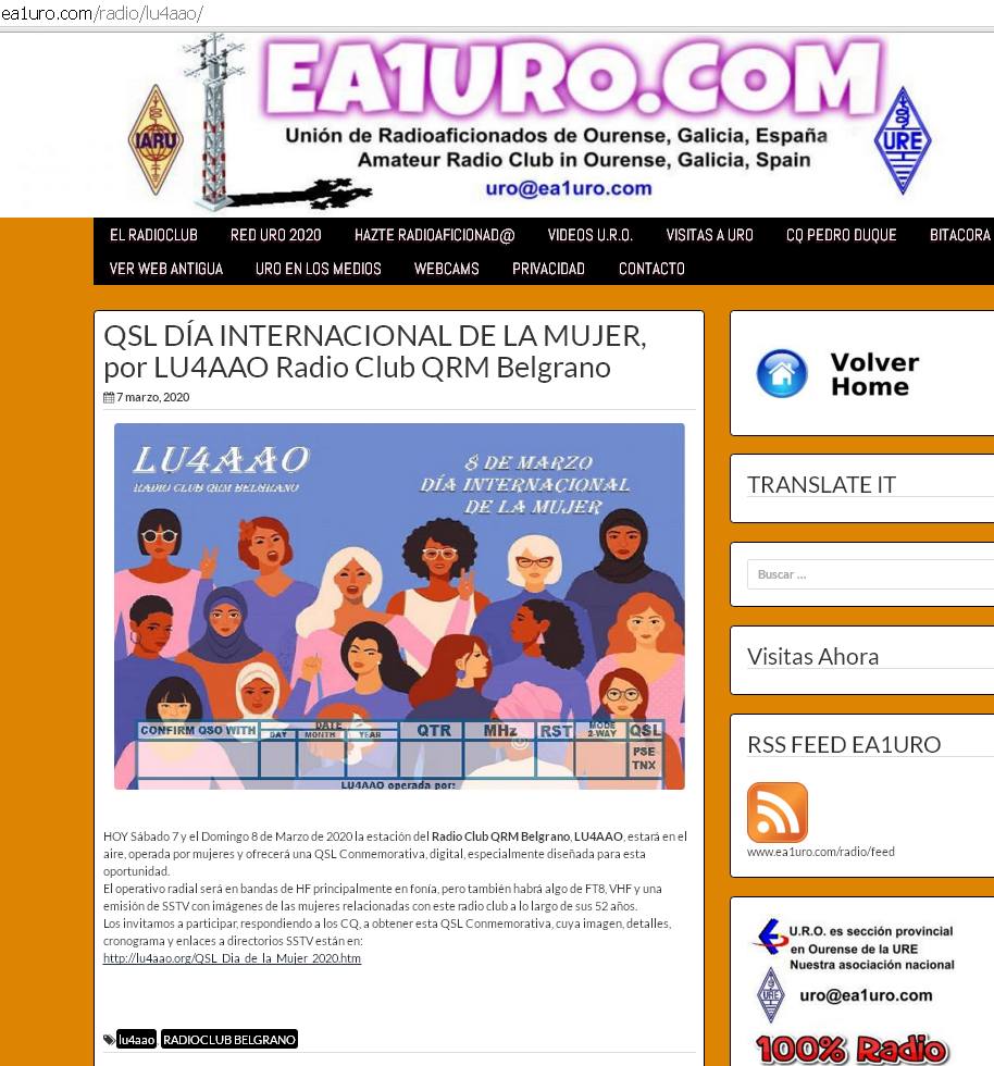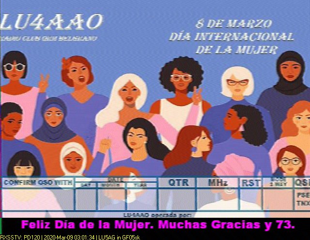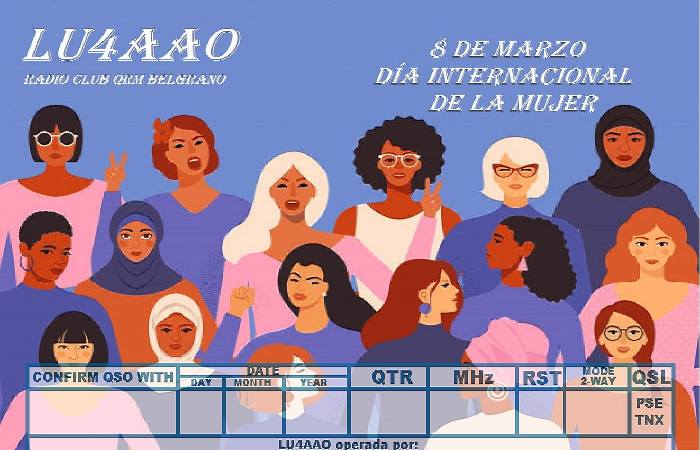 El 8 de Marzo se conmemora el Día Internacional de la Mujer. Con tal motivo la estación del Radio Club QRM Belgrano, LU4AAO, saldrá al aire operada por mujeres socias de esta institución el Sábado 7 y Domingo 8 de Marzo de 2020, ofreciendo la QSL Conmemorativa que se ve arriba, en un operativo radial en dos o tres bandas, en fonía y algo de FT8.