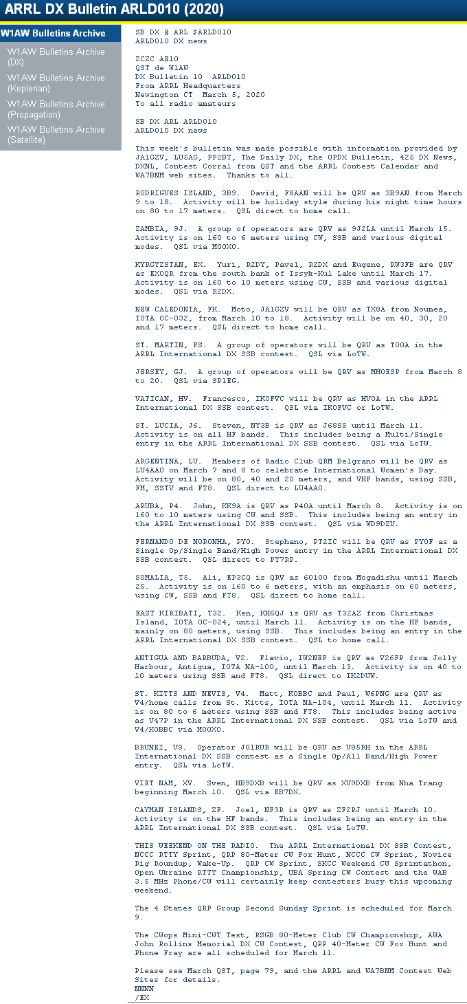 ![]() Viernes 1º de Marzo de 2019: Lanzamiento del Diploma / Award Internacional ARISS SSTV Diploma de LU7AA Amsat Argentina, con la colaboración de LU4AAO Radio Club QRM Belgrano. http://lu4aao.org/certificados.htm#ARISS_SSTV, Bases en Español. http://amsat.org.ar/certdiplomae.htm, Bases en Inglés. (Hay varios idiomas)