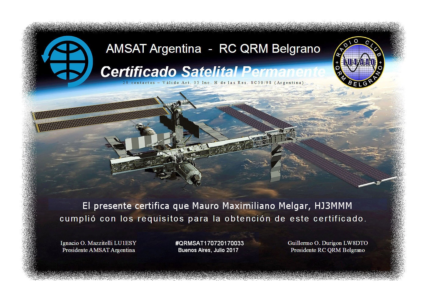 PARTICIPACIÓN DEL RADIO CLUB QRM BELGRANO EN CERTIFICADOS DE AMSAT ARGENTINA