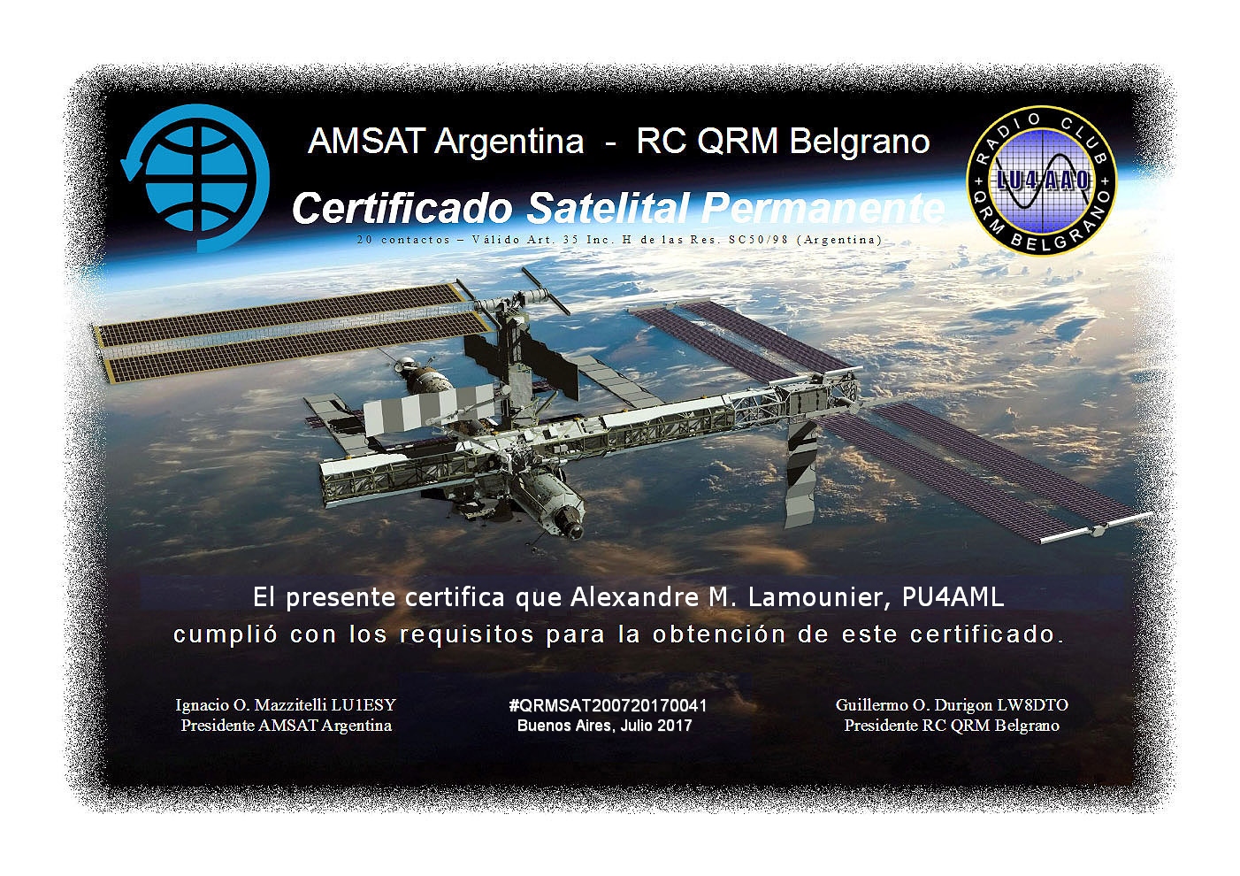 Certificado Satelital, desde el sitio web de Amsat Argentina.