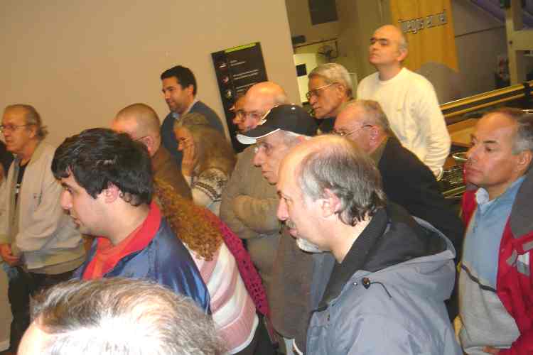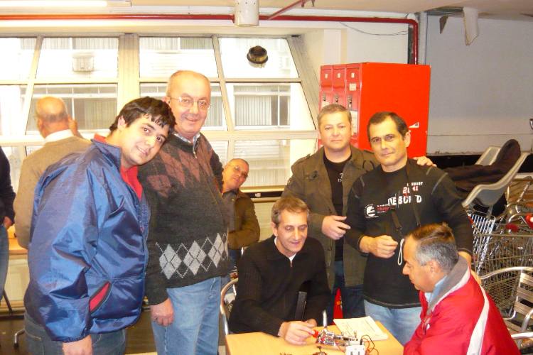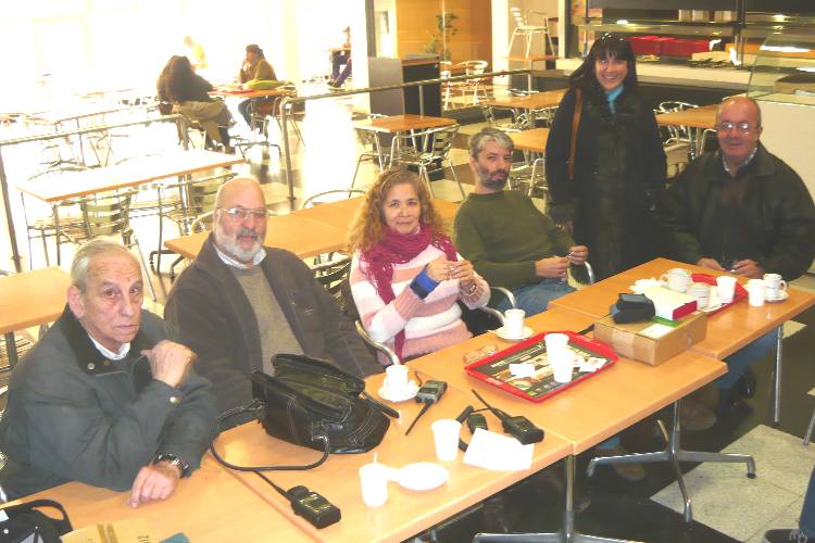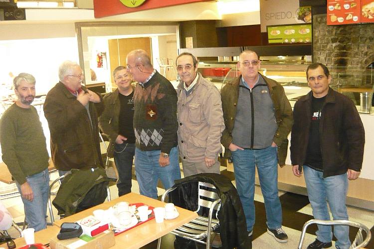 gacw_04jun2011_01.jpg El encuentro comenzó a partir de las 10:30 en la planta baja y con café. Aquí están Guillermo, LU8DQ; Alberto, LU1DZ; Eduardo, LW3DG; Raúl, LU6EF; Marcelino, LU7DSU; ; y Ricardo Gabriel, LU3DAT.