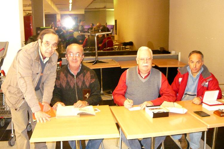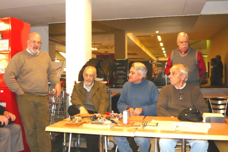 gacw_04jun2011_04.jpg Luego se acomodaron las mesas en el 1° piso y subimos. Aquí están Marcelino, LU7DSU; Raúl, LU6EF; Alberto, LU1DZ y .