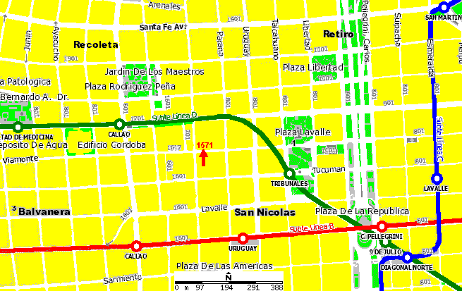 Subterraneo: Las líneas B y D tienen estaciones a menos de 4 cuadras y la línea C tiene la estación Lavalle a 7 cuadras.