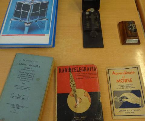 Gabriel, LU1DZ; Raul, LU6EF y Eduardo, LW3DG, describiendo aspectos de la radioafición. |