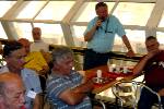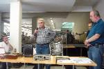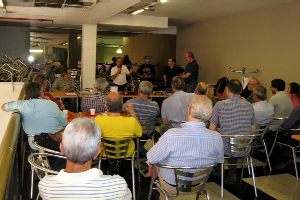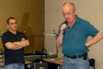 Luis Calabrese toma la palabra, explica los cambios ocurridos en la CNC y da su visión de la radioafición. A la izquierda está Marcelino, LU7DSU y a la derecha están Gabriel, LU1DZ y Raúl, LU6EF. |