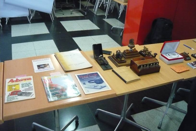 Muestra de manipuladores, equipos de telegrafía, libros y revistas relacionadas con la actividad