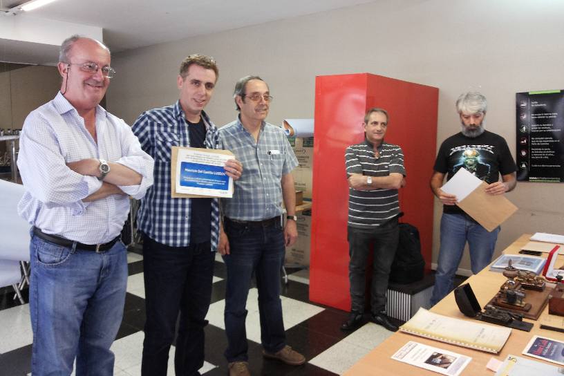 Raúl, LU6EF; Marcelino, LU7DSU; Luis Calabrese; Guillermo, LU8DQ y Juan Carlos, LU9DO, en la presentación del premio para Héctor, LU1DOW, por su trabajo en 137 KHz.