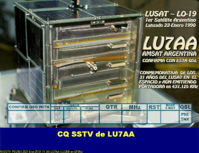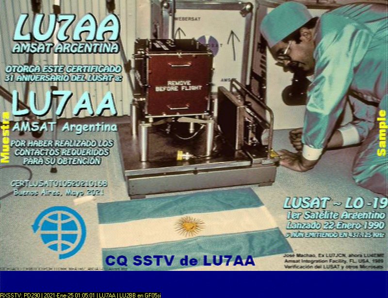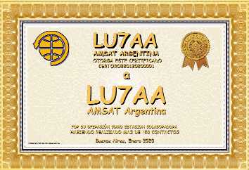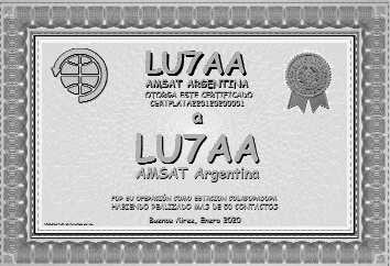 El 22 de Enero de 2021, el primer satélite argentino LUSAT cumple su 31° aniversario de la puesta en órbita y por momentos emite una portadora interrumpida. Para conmemorarlo Amsat Argentina, LU7AA, emite este Certificado a 5 contactos, LU7AA contacto obligatorio y al menos 4 estaciones colaboradoras, durante la "Semana del LUSAT", el Sábado 16 y Domingo 24 de Enero de 2021.
